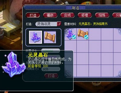 灵饰制作材料:灵饰指南书+元灵晶石+强化石(强化打造才需要)