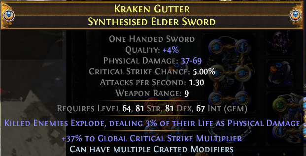 具体合成词缀是需要使用破碎词缀“照亮范围%”来合成,不过我买的是成品。尽量找属性需求低的武器,力量和敏捷对于法系玩法来说是不容易堆栈的。