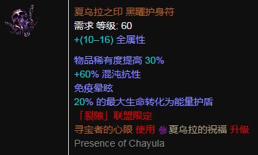 很简单的道理,有了这条项链,眩晕就不怕了,而且还可以加海量护盾,60混沌抗性对于低血玩法来说非常有用