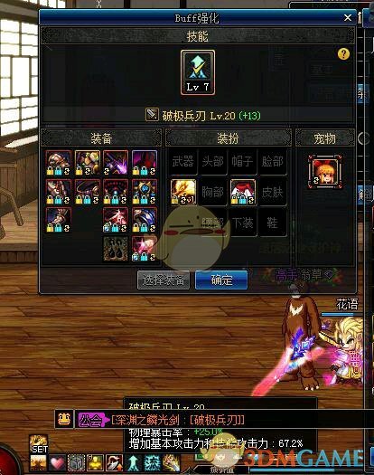 而去修炼场实测出来,穿远古遗愿换装的时候基本攻击力和技能攻击力的加成是66.2%,这加成已经是旧版换装的完美buff换装了,三宝珠双白金徽章,所以只点7级就能达成20级完美换装了。