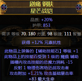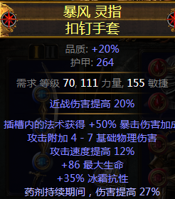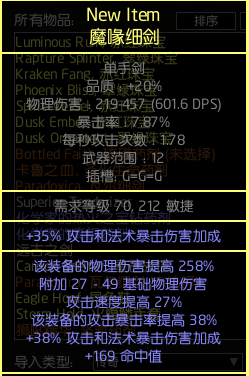 词缀:物理点伤,生命,攻击速度,抗性,附魔药剂28%伤害