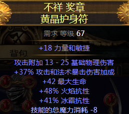 词缀:腐化出智慧力量增加(因为这个BD很缺智慧)或腐化出最大生命(两者都是可选项)