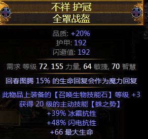 头盔:加三召唤头 原因:纯净之捷带有召唤物词缀,能吃到+3等级