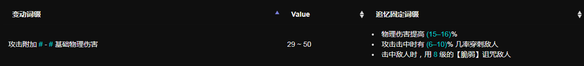基底词缀为物理伤害提高和最大生命的基底词缀