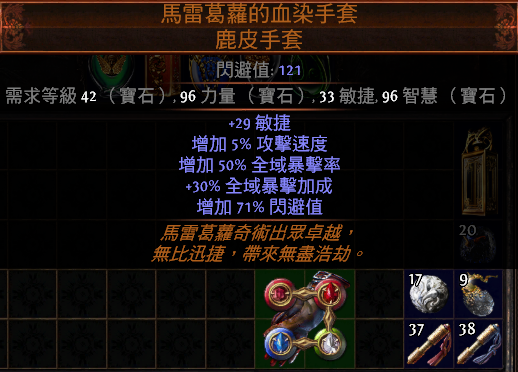 如果选择使用暗金珠宝来达成100%物转冰的话,这地方手套推荐双暴手来弥补一下自己珠宝方面欠缺的一些爆伤属性!
