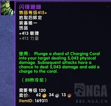 使用:将一片闪锋珊瑚插入目标,造成5043物理伤害。后续伤害有几率造成5043伤害,并且增加一层闪锋珊瑚。(层数越高触发伤害越高,20秒CD)