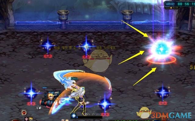 星之守护者桥乔迪亚克这一个怪物比较特别,大家需要提前了解一下它的技能。因为存在1个真假分身,6个假的小分身无法攻击,大分身可以进行攻击。看箭头标注的就是真分身,发着光,并且还比较大。假的分身是小的,并且是无敌的,无法攻击。