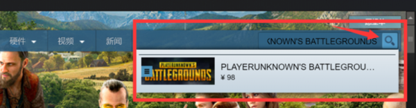 2.输入PLAYERUNKNOWN'S BATTLEGROUNDS,点击搜索。