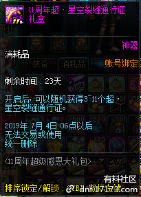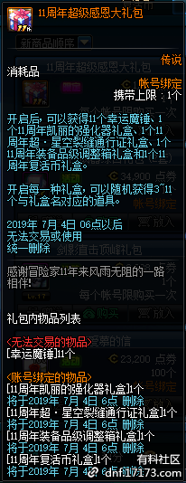 商城上架11周年超级感恩大礼包,售价1111点券无法使用代币券。