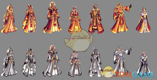 这套天12采用宫廷风设计,国服暂时只推出了两种颜色,普通的白色款以及稀有的金色款,男角色外观如下图所示: