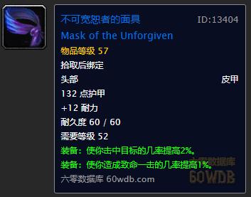 不确定1.12版本世界是否会掉落泰坦头的锻造图纸,所以由斯坦索姆出品的不可宽恕者的面具是狂暴战唯一的选择,这个装备由一个稀有精英掉落,所以入手很方便,但是据说掉率不高,而且不是每一只队伍都会路过那里特意去打一只精英怪,所以在入本之前最好和小队沟通好。