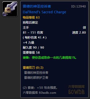 雷德双刀是黑石塔上层第二个BOSS雷德掉落的一个套装,分主手和副手,两把武器套装奖励50AP,是一件前期盗贼必刷的装备。拥有雷德双刀的贼,简称双刀贼(比蛋刀还早),通过剑专天赋的加成在团本中可以轻松打出第一梯队甚至媲美法师的全程伤害数据。
