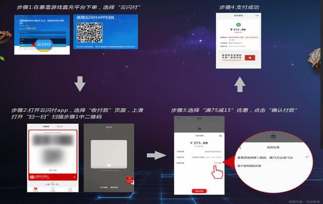 暴雪畅玩季登场了!6月14日至7月14日,每天10:00至23:59期间,在电脑端打开暴雪游戏直充专区或魔兽争霸官方对战平台其中任一平台单笔下单购买指定游戏产品满75元,并使用 云闪付app扫码付款,可享受 15元立减优惠 。同一持卡人在活动期间最多可参与一次优惠活动。每日名额有限,先到先得!