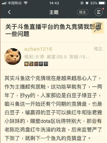 然而,在平台中催生出的“鱼丸竞猜”等活动(押鱼丸猜比赛胜负),本来从一个单纯的娱乐性质的环节,到了后期慢慢演变成为被人为控制竞猜结果的一种“黑幕”现象。主播狗贼曾在NGA论坛中亲自发帖揭露这个现象。