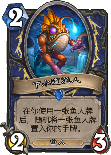 卡组里面基本没什么过牌卡,下水道渔人在一定程度上可以起到过牌的作用,虽然我们不是鱼人卡组,但里面还是有一些鱼人的,一般来说,中后期过2,3张鱼人还是比较轻松的,后续有更多的选择。