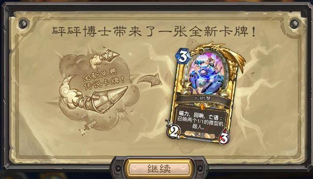 这次"机械崛起"活动的起止日期为6月4日~7月2日,在这期间玩家通过登录炉石传说即可获得一张金色的全新中立随从——大铡蟹。这张卡可以说是当前版本中机械体系的神卡,磁力回响亡语这三种效果,使得大铡蟹在实战过程当中可以和绝大多数机械配合,是一张既可保证质量又可站场的神级卡牌。绝对是当前版本中的T1卡牌。