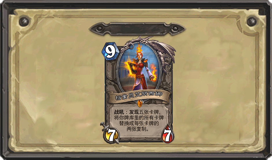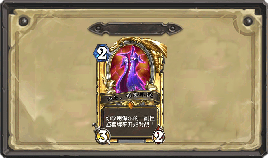 这张卡牌来自于购买了全盘的冒险模式赠送的一张中立金色橙卡。其作用和砰砰计划的神奇的威兹班一样,一张卡牌可以代替5个卡组,是一张颇受新手喜爱的卡牌。
