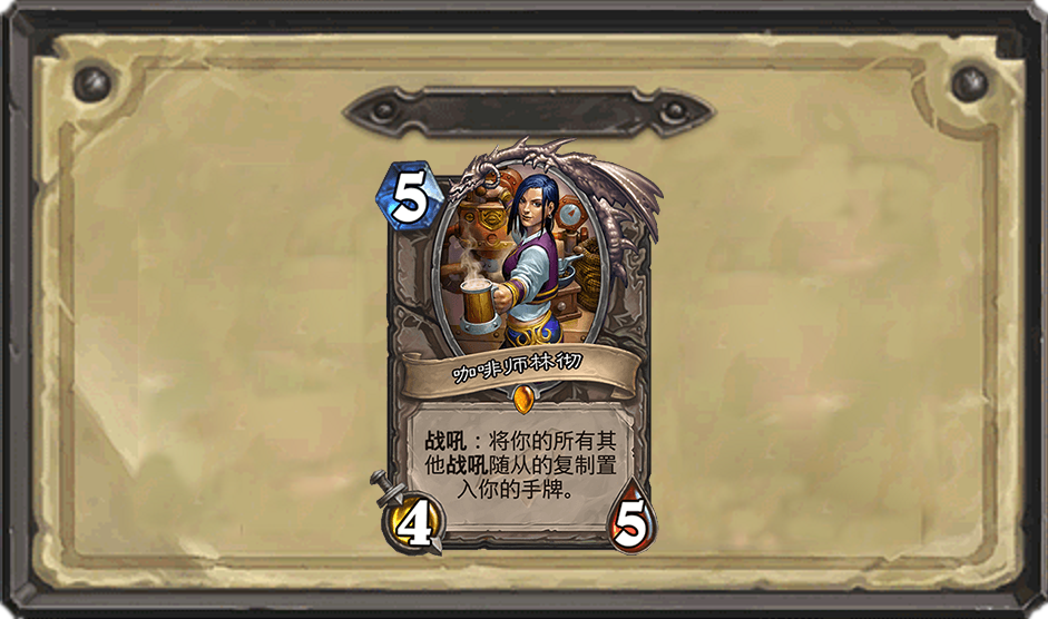 这个颇具东方特色角色的橙卡,在如今的环境中不仅能够复制蹦蹦兔等低费强力战吼,同时也能复制洛欧塞布等费用较高的强力战吼随从,在很多的拥有战吼随从的卡组中,这张咖啡师林彻都能够发挥不小的作用,其回手的战吼随从,能够给对手造成不小的压力。