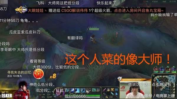 此话来自Faker大魔王李瓜皮的直播实录,当选英雄的时候李瓜皮看到了队友的段位是大师,明显不开心,觉得这人段位有些低了。然后果不其然输掉了比赛,李瓜皮金句从此得来:这个人菜的像个大师!