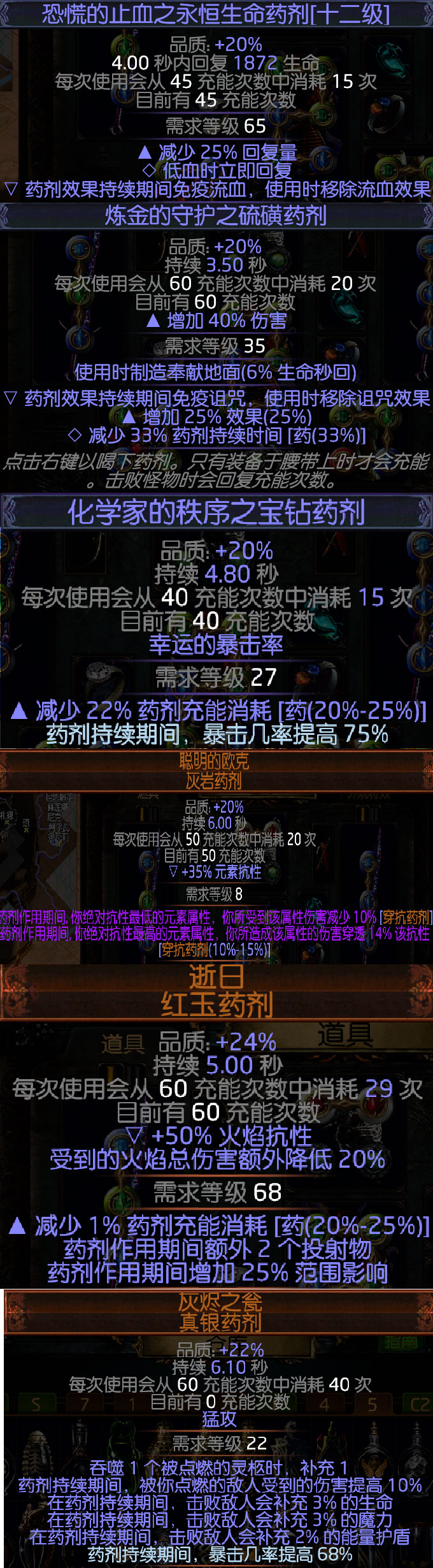 如果需要配合瓦尔熔岩护盾,则带上一瓶护甲药水,洗出药剂持续时间内,加百分比护甲;以及药剂时间缩短33%,药效提高25%。