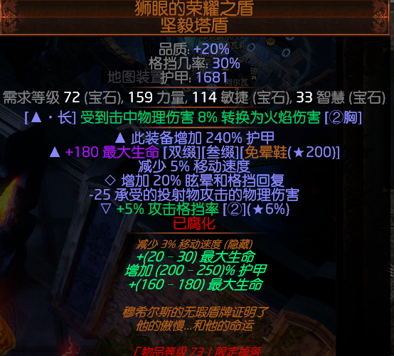 盾牌尽量要高属性 也可以用感电增伤 或者格挡概率增伤减少魔力保留 高生命高格挡之类的盾牌 当然 黄盾牌也看缘分