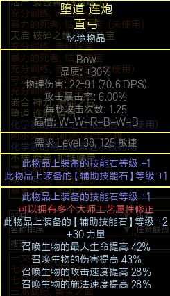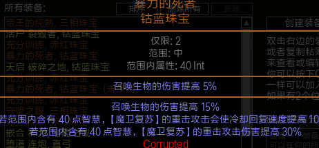 这个是伤害最高的但是没有召唤生命 小僵尸少5000血左右正常刷图没任何影响 t18没影响因为都是秒 配合号召 僵尸基本不会死 死了也可以再很快的再次召唤就是不能下矿 比较变态的词缀小僵尸就会站不住但是如果带召唤生物生命没问题小僵尸接近6W的血你死了僵尸都难死