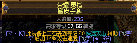 手套:前缀最大生命 后缀快速攻击 后缀最好带个力量或者智慧词汇。空一后缀调抗性。原来用的卖掉了当时买的是15C。