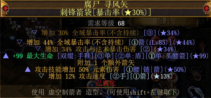 土豪级 可以瓦出腐化基地词缀 +1箭矢 这也就达成了+2箭袋 完美!