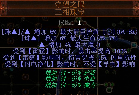 词缀要求 双电伤 最大生命 攻击速度或者暴击伤害 这四条即可 4点伤看着好看实际不如3点伤+暴伤或攻击速度