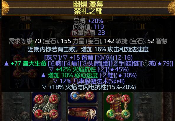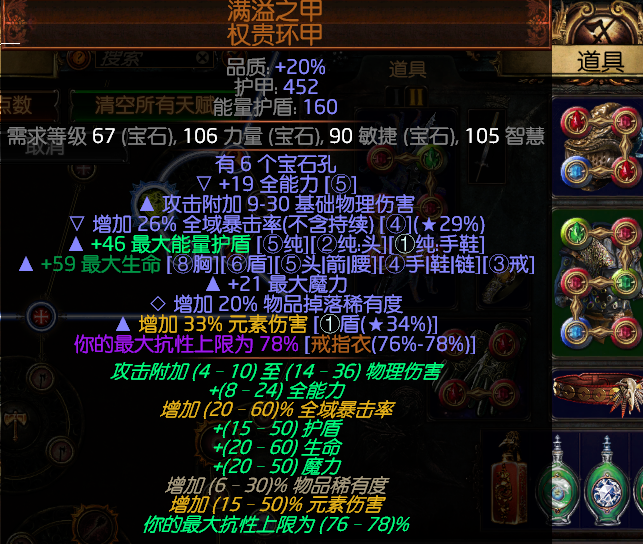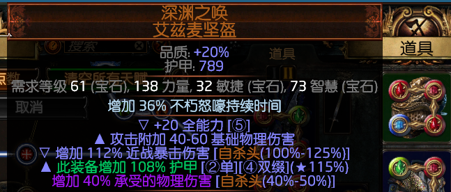 可以穿黄头,加大量的血量,ES,智慧敏捷,抗性,命中(在武器未做必中附魔的情况下)