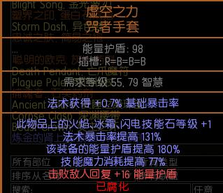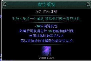 然后搭配绝望诅咒21级减少30混沌抗(对T16以上BOSS 三分之一效果也有10%,BOSS有25%混沌抗)即可穿透混沌抗到负!