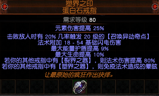 另一个戒指选择暗金蛋白,便宜且伤害很爆炸~,当然并不是最强,塑界稀有底子蛋白戒指能打造出比这更优秀的词缀(当然市场目前也没有几个,所以等我打造出来了再替换吧)