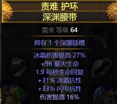 80C市集淘的腰带,未做任何改动,一样重点属性为生命抗性再是追求伤害