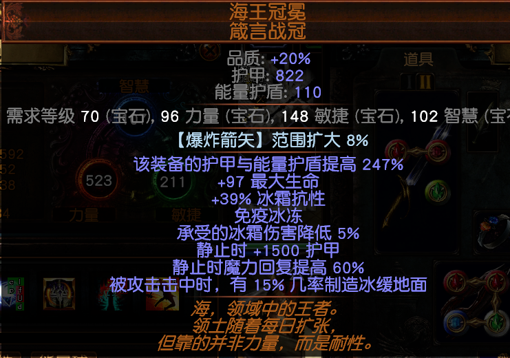 头用海王冠冕免冰,有血,有抗,站撸加护甲加魔力回复,5%冰减伤对长老的冰矛非常好。选择高生命高抗性高护甲即可。可绑定