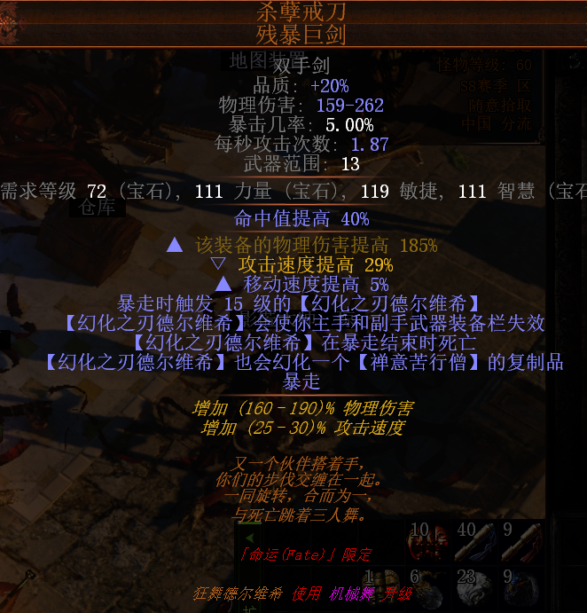 武器:杀孽戒刀 残暴巨剑(绑定暗金)