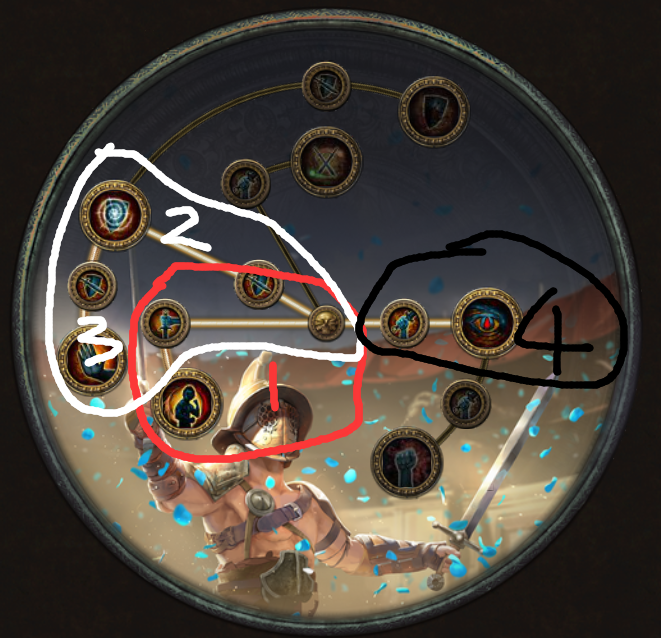 先往右边点,把吸蓝和格挡率给拿了,然后再往左边走,左上的开肠剥肚和各个珠宝孔留着最后点,生命点永远是优先选择