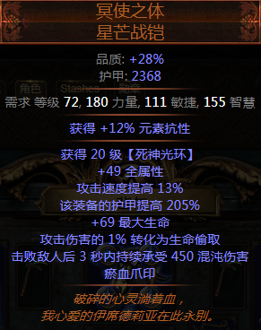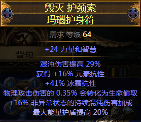 直接用畸变点出混沌伤+非异常混沌伤,万一出个ES或者全属性最好,再付个最大能量护盾百分比就完美