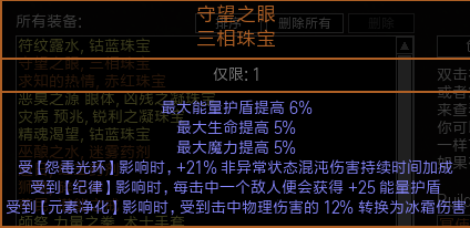 深渊珠宝选择高能量护盾,近期击败增伤,持续伤,混沌伤,如果没有得猛攻手段,来一条击败猛攻也是很不错的,速刷覆盖率还是挺高的