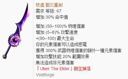 这把剑是获得物理伤害的300%随机元素伤害(火焰、冰霜、闪电伤害),但是不能造成除了元素的其他伤害(混沌、物理),并且元素伤害可以造成感电,同时火焰伤害也可以造成点燃,冰霜伤害可以造成冰缓和冰冻,所以这把武器物理%、物点、攻击技能元素伤害是通吃的,所以天赋、辅助技能、珠宝、首饰主要以物理%、元素%、基础物点、攻击技能元素伤害为主。