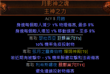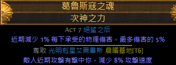 【选择理由】配合天赋可以在战斗状态有45%躲避攻击,35%躲避法术,还有10%避免投射物伤害,刷图和T18的多怪物理减免