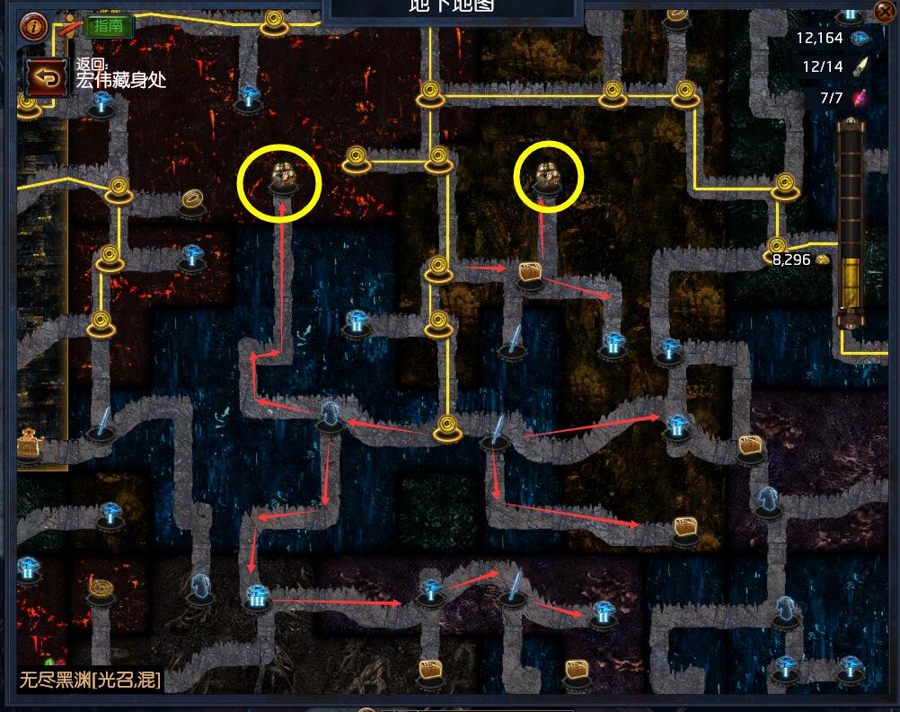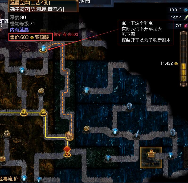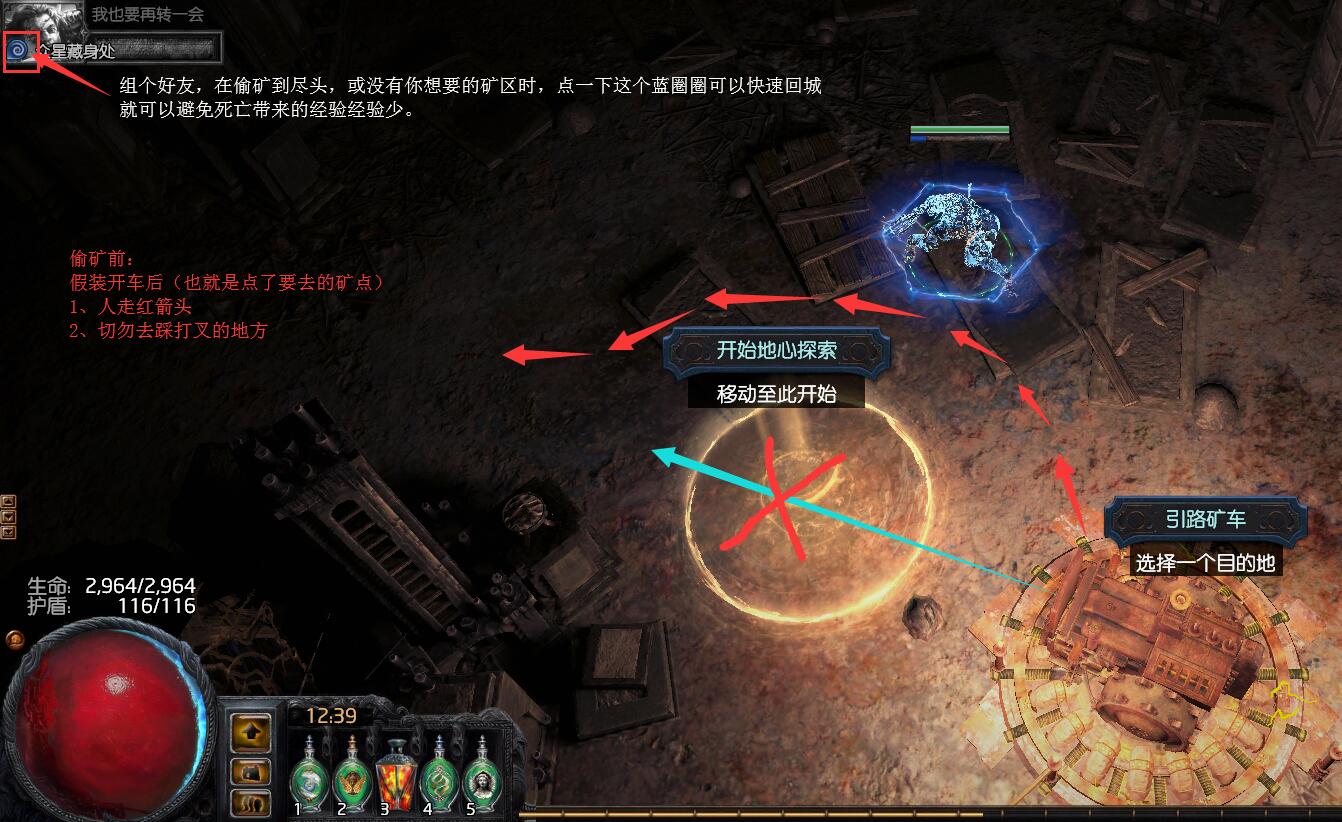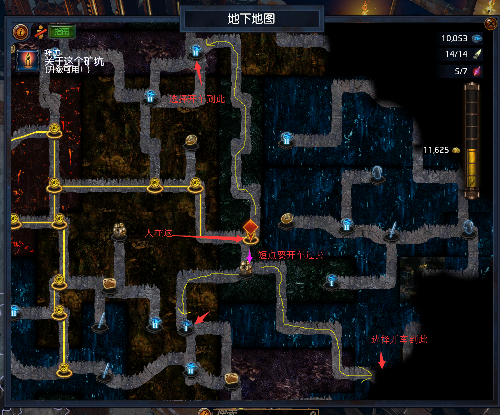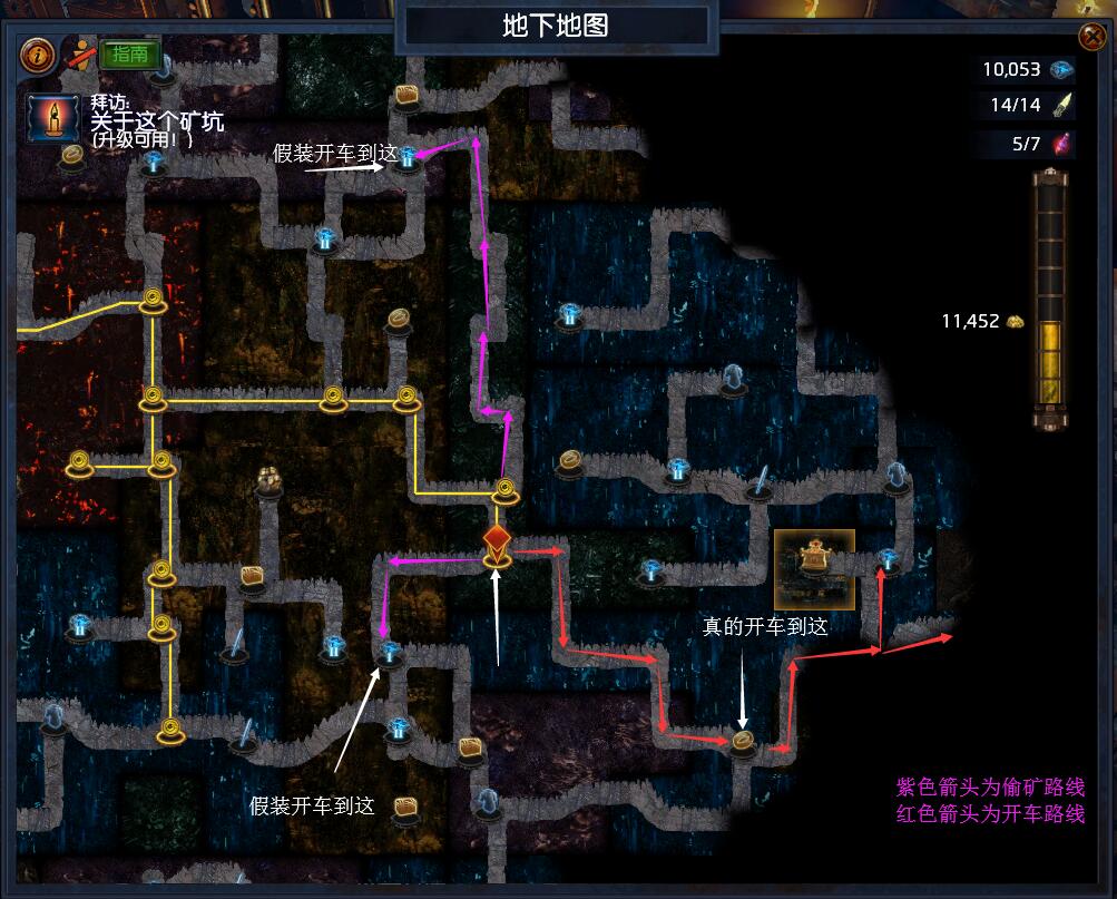 红色箭头为:我偷矿的路线,看过技巧篇的朋友应该能一眼看懂,意思为,我横着
