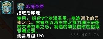 沧海圣匣用来合成团本的精华(T艾泽拉斯的不朽赐福,DPS生命之凝力,N活力导管),只有3个BOSS掉落:艾萨拉之辉,女王法庭,艾萨拉女王。