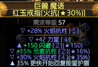 还有一个戒指位置选用黄装,堆抗性、力量(敏捷),空一个前缀附魔更快回盾(15%足够,不必要花E附魔20%),当然也是C价:
