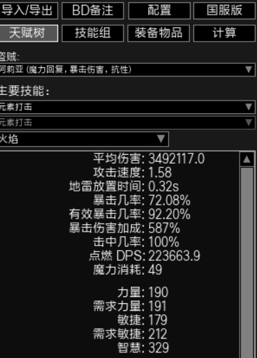 1)只考虑常驻BUF。包括暴击球、感电、致盲、冰缓、点燃、近期未打出暴击、召唤物、元素之相。单次200w,每0.32秒1次,一次2个地雷,1200w对岳父dps。