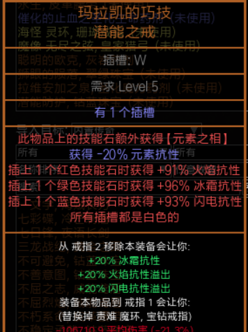 注意,如果用马拉凯的巧计不能用愤怒,会给召唤物加上火伤而破坏元素之相。如果用纯净之捷,需要召唤物附加冰点伤、电点伤的珠宝,或者用憎恨(代价大不推荐)