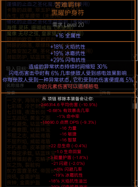 项链:绑定苦难羁绊,获得火伤感电和承受伤,收益极大。我这个是10c买的。