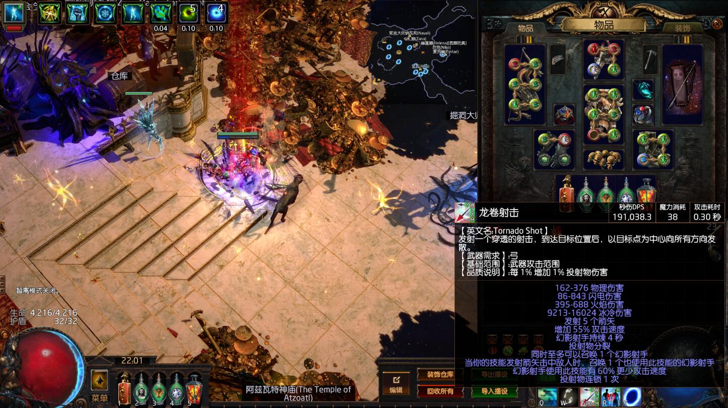 先来个面板看看吧。不吃药站家里19W 5根箭 技能连结:龙卷射击-攻击元素伤害-附加冰-幻影射手-快速攻击-分裂。