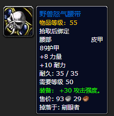你也可以选择T0腰带,黑下的“军需官兹格雷斯”掉落,但是只有10敏捷,不提供额外的攻强,暴击和命中……