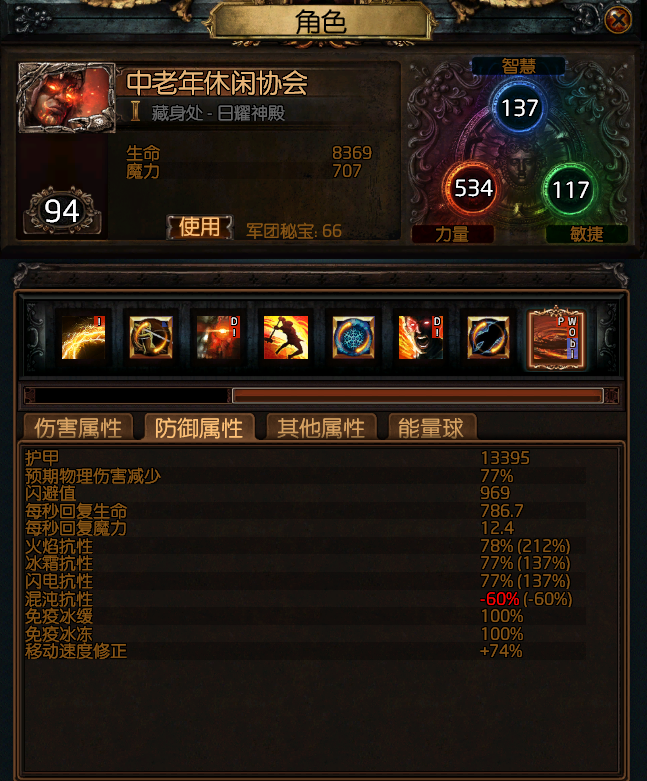 防御,一键吃药了,秒回看起来一般,不过战斗时有比较可观的火焰伤害生命偷取,所以还好