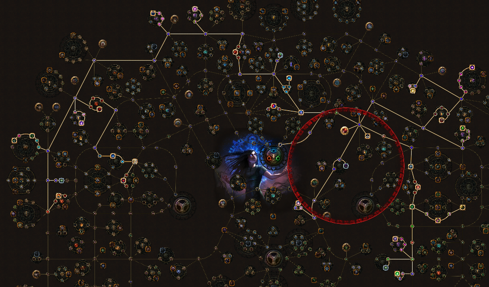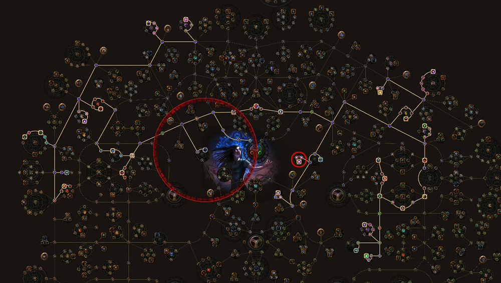 至于为什么天赋有左右出门之分,最主要是因为我们使用的“瓦尔永恒珠宝”会腐化其珠宝孔周围的天赋,而女巫左右了两边恰好是最好的位置!不会影响到重要天赋被腐化,且能让无用的出门点变成有用的属性加成!